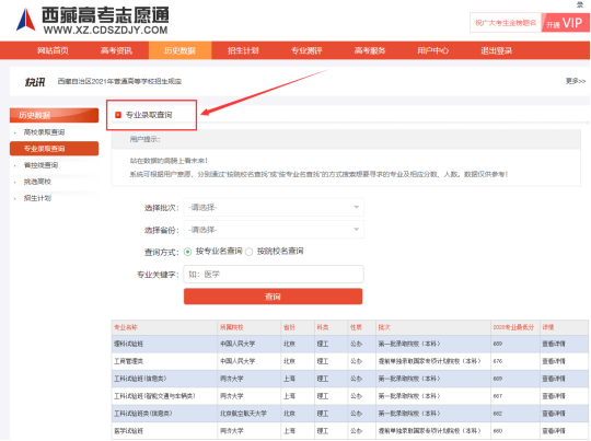 (2)专业录取查询
